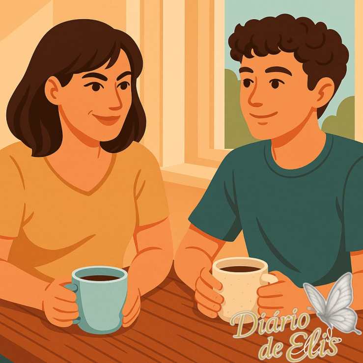 Hoje, pela manhã, vivi mais um desses momentos simples, mas cheios de significado. Tomei café com meu filho e tivemos uma conversa madura, cheia de troca e aprendizado. Percebi, com alegria, o quanto nossa conexão é forte. Rimos, brincamos e, no meio disso, pedi a ele que me passasse uma playlist das músicas que gosta.